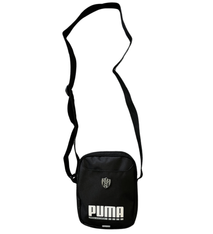 Mini taška značky PUMA cez rameno v čiernej farbe s odznakom FC Spartak Trnava.