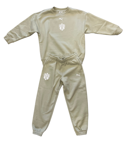Detská originálna súprava PUMA pre najmenších fanúšikov FC Spartak Trnava v olivovej farbe s logom klubu.