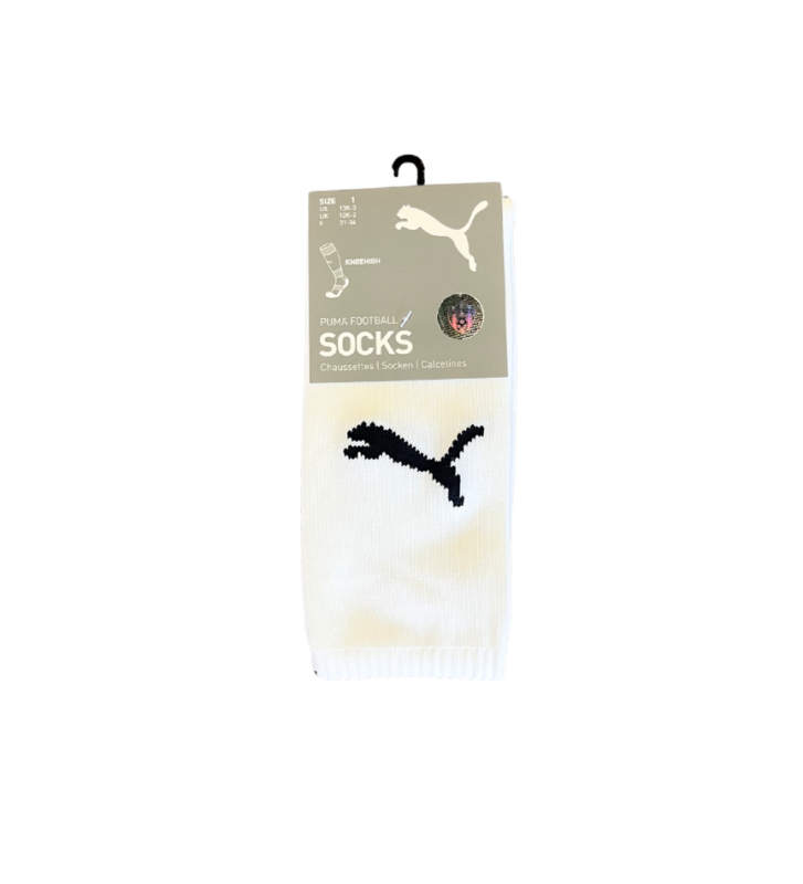 Futbalové štucne PUMA v bielej farbe v prevedení KNEEHIGH pre maximálne pohodlie a stabilitu počas hry. Priedušný materiál. Ideálne na tréning aj zápas.