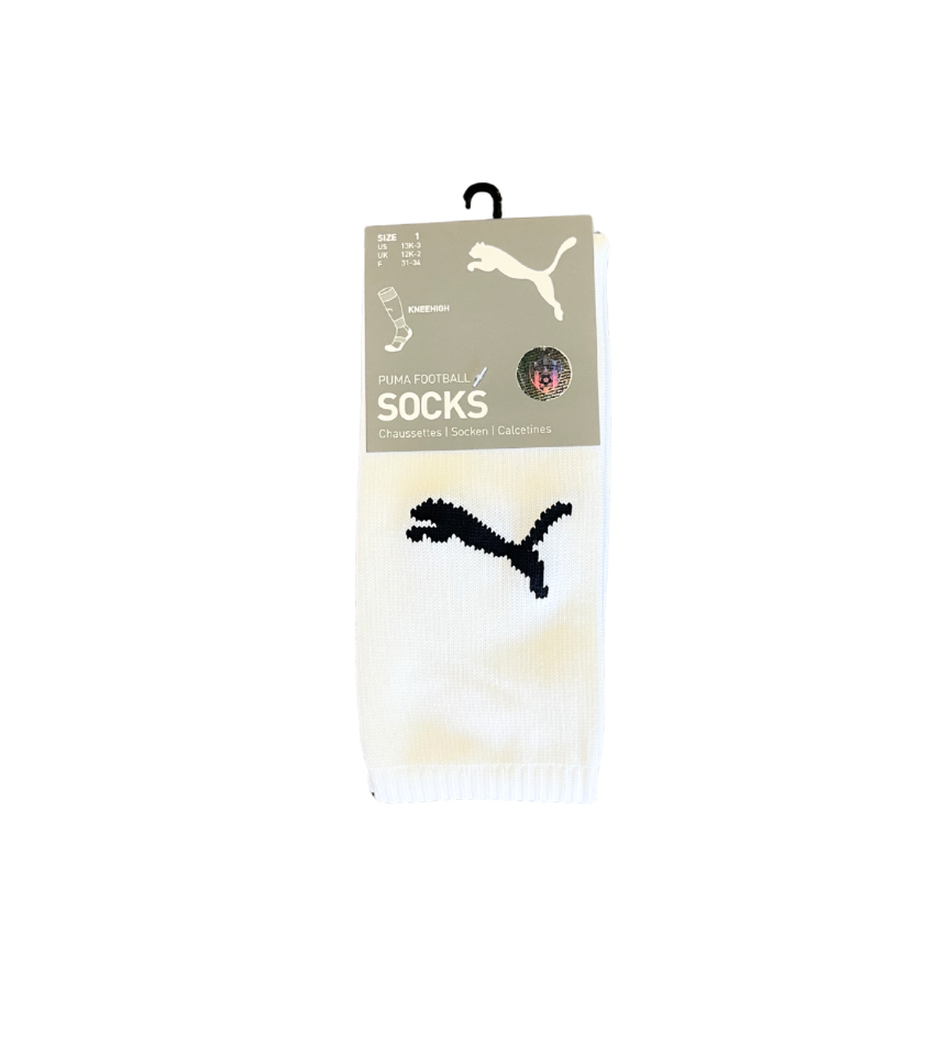 Futbalové štucne PUMA v bielej farbe v prevedení KNEEHIGH pre maximálne pohodlie a stabilitu počas hry. Priedušný materiál. Ideálne na tréning aj zápas.