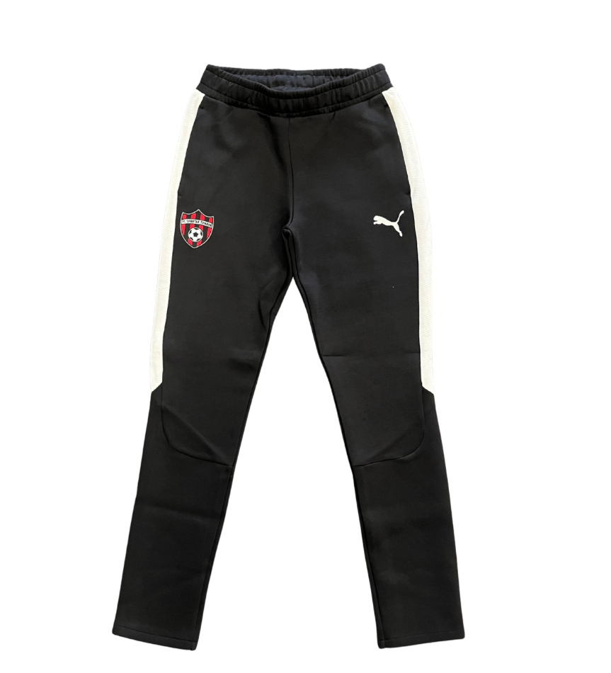 Voľnočasové tepláky PUMA v čierno-bielej farbe s 3D znakom klubu FC Spartak Trnava.